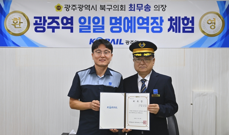 이정호 광주역장은 “1일 명예역장 체험 행사에 흔쾌히 응해주신 최무송 의장님께 감사드린다”며 “지역사회와 활발히 소통하며 함께 성장하는 코레일 광주역이 될 수 있도록 최선을 다하겠다”고 말했다.