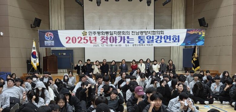 [무한뉴스=정민정 기자] 민주평화통일자문회의 광양시협의회는 15일 오후 2시, 광양시 광영고등학교 광영관에서 ‘2025년 찾아가는 통일강연회’를 개최했다.
