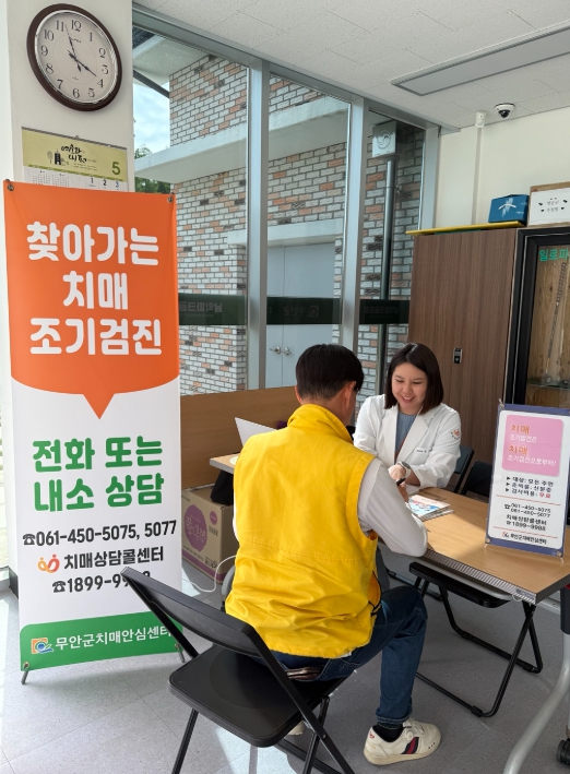 이에 무안군은 비교적 젊은 60세 이상 어르신들이 즐겨 찾는 파크골프장을 직접 찾아가 치매 검진을 실시하며, 치매 조기 발견과 치료에 적극 나서고 있다