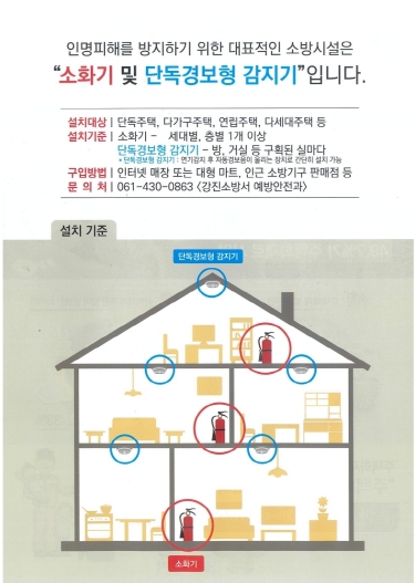 특히 강진소방서는 소화기 비치의 중요성을 강조하기 위해 최근 관내에서 발생한 초기진화 사례를 함께 소개한다.