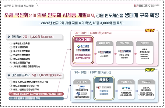 - 이는 단순한 예산 확보를 넘어 강원자치도가 반도체 소재·부품 국산화 및 의료반도체 설계부터 시제품 개발까지 미래 산업의 실질적인 거점으로 도약하는 중대한 전환점이 될 것이라는 점에서 큰 의미가 있다.