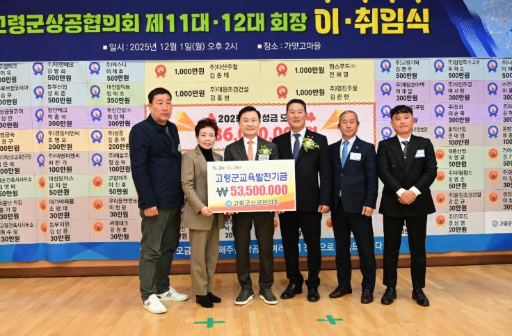 [무한뉴스=최진수 기자] 고령군상공협의회에서 12월 1일 가얏고마을에서 개최된 ‘2025년 고령군상공협의회 워크숍·정기총회 및 회장 이·취임식’에서 지역의 교육 발전과 인재 양성을 위해 사용해 달라며 교육발전기금 5,350만원을 기탁했다.