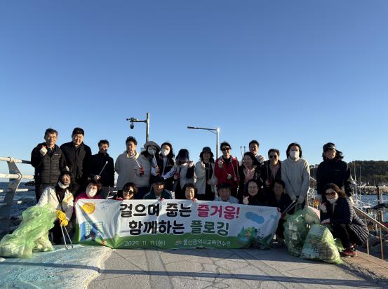 [무한뉴스=최진수 기자] 울산교육연수원은 지난 11일 북구 정자동 일대에서 ‘걸으며 줍는 즐거움! 함께하는 쓰담 달리기(플로깅)’를 주제로 환경 정화 활동을 했다.