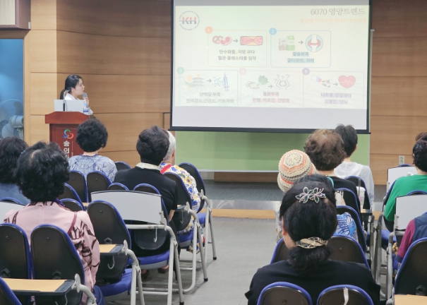 이번 공개강좌는 복지관을 이용하는 회원을 대상으로 ‘6070 트렌드별 건강관리’에 대한 내용을 주제로 최신 트렌드와 노년기 생리적, 신체적 특징 등을 알기 쉽게 전달하는 시간을 가졌다.