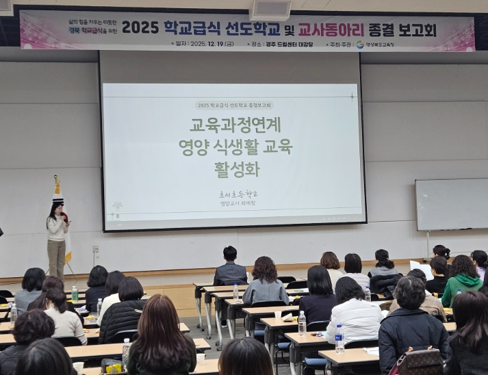 [무한뉴스=정승훈 기자] 경북교육청은 19일 경주시에 있는 교원드림센터 대강의실에서 도내 영양(교)사 230여 명이 참석한 가운데 ‘2025학교급식 선도학교 및 교사동아리 성과보고회’를 개최했다고 밝혔다.