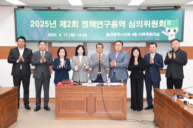 한편, 울산시의회 정책연구용역 심의위원회는 지난해 10월 시의원 4명과 민간위원 5명 등 총 9명의 위원으로 구성되어 의원연구단체 정책연구용역의 전문성과 공정성을 높이는 역할을 하고 있다.