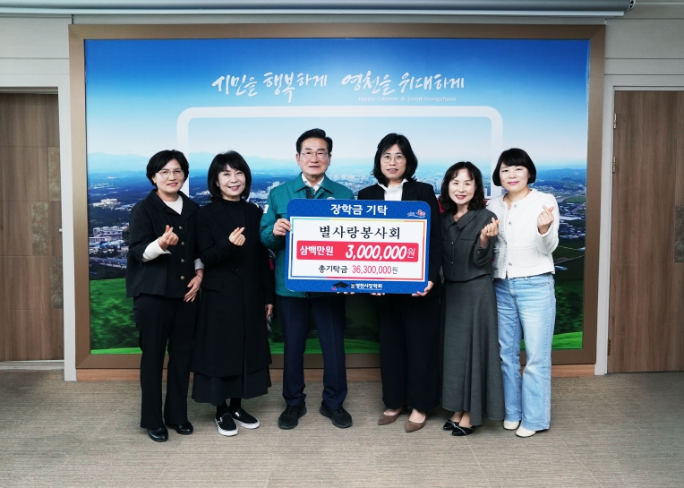 2008년 결성된 별사랑봉사회는 지역에 따뜻한 사랑의 손길을 펼지는 봉사활동 모임으로, 영천 교육발전과 영천 학생들이 훌륭한 인재로 성장해 주길 바라는 마음으로 2013년부터 장학금을 기탁해 총 기탁금액이 3,630만원에 이른다.