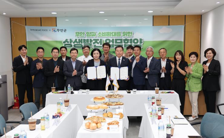 김산 군수와 원정훈 신세계푸드 제과점 담당이 함께한 이번 협약은 무안 양파를 사용한 베이커리 제품 개발과 판매, 무안 양파 홍보 및 상표 인지도 제고 등에 대한 상생협력을 목적으로 한다.