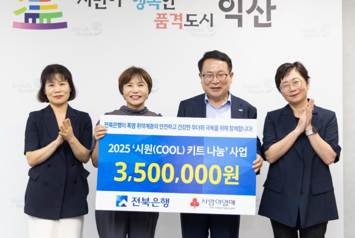 [무한뉴스=정민정 기자] 익산시는 전북은행이 시청을 방문해 지역 저소득 위기가구를 위한 쿨키트 70상자(350만 원 상당)를 기탁했다고 13일 밝혔다.