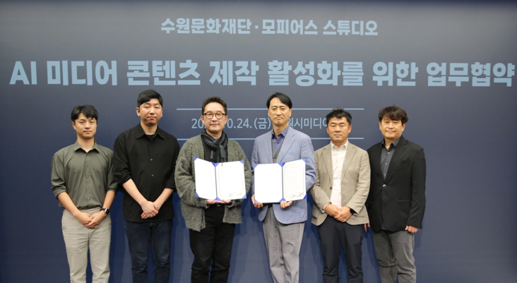 [무한뉴스=양현명 기자] 수원문화재단 미디어센터는 지난 24일 모피어스 스튜디오와 ‘AI 기반 콘텐츠 창·제작 협력 체계 구축’을 위한 업무협약(MOU)을 체결했다.