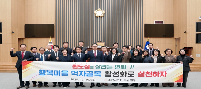 | ▲ 춘천시의회, '춘천시 원도심 환경개선 및 행복마을 먹자골목 활성화 결의문' 채택 |