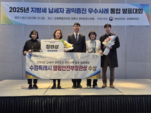[무한뉴스=양현명 기자] 수원특례시가 행정안전부 주관으로 20~21일 강릉시 세인트존스호텔에서 열린 ‘2025년 납세자 권익 증진 우수사례 통합 발표대회’에서 장려상을 받았다.