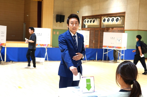 임채성 의장은 이날 오후 2시 종촌동 행복누림터 지하 2층 체육관에 마련된 사전투표소를 방문해 투표에 참여했다.