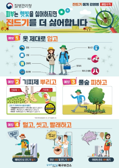 함인석 북구보건소장은 “본격적인 농작업 및 봄철 야외활동으로 진드기에 노출 가능성이 높아지기 때문에 시민들이 진드기 매개 감염병을 올바로 인식하고 예방수칙을 준수할 수 있도록 다양한 교육과 홍보를 이어가겠다”고 말했다.