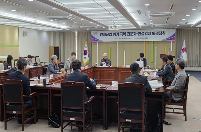 이날 회의는 시 도시혁신균형실장 주재로 열렸으며, 한국건설산업연구원을 비롯한 건설 및 금융 전문가, 종합·전문·건설기계 분야 건설업계 관계자 등이 참석했다.