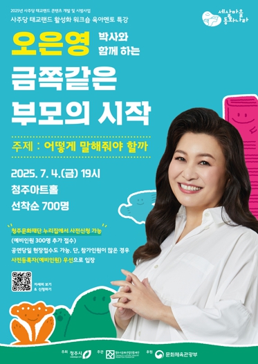 청주시와 청주시문화산업진흥재단은 오는 23일부터 ‘오은영 박사와 함께하는 금쪽같은 부모의 시작’ 워크숍 참여자를 모집한다고 밝혔다.