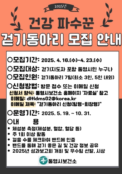 ▲ 통영시, 주민 주도형 걷기동아리‘우리동네 건강파수꾼’모집 |