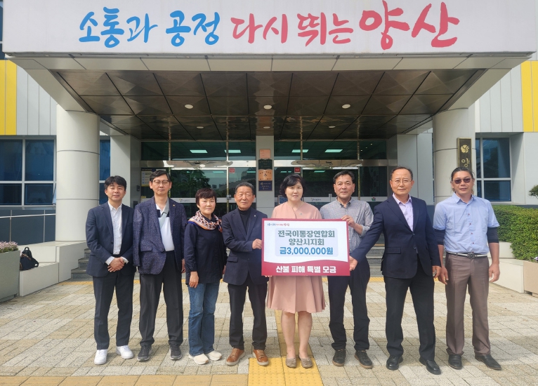 이건호 지회장은 “한마음으로 정성을 모아주신 양산시 이통장 여러분들께 감사드리며, 산불로 인해 큰 피해를 입은 이재민분들께 깊은 위로의 말을 전하고, 하루빨리 일상을 회복하시길 바란다”고 말했다.