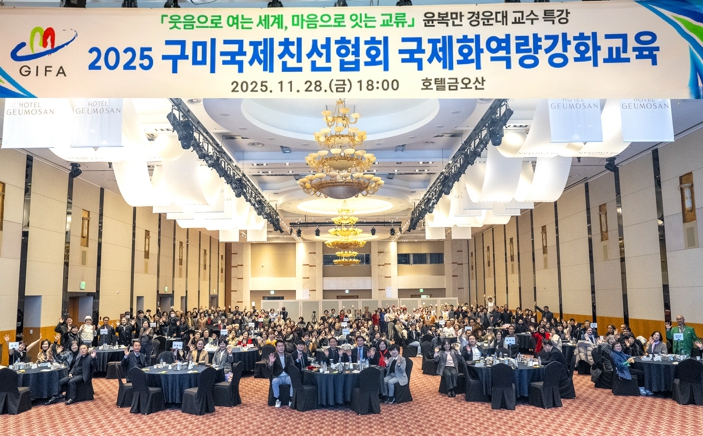 [무한뉴스=최진수 기자] 구미국제친선협회는 지난 28일 호텔금오산 컨벤션센터에서 회원 200여 명이 참석한 가운데 '2025 구미국제친선협회 국제화 역량 강화교육'을 개최했다. 이번 교육은 민간 외교관으로서 필요한 글로벌 소통 역량을 높이고, 해외 방문객을 맞이하는 지역의 역할을 강화하기 위해 마련됐다.