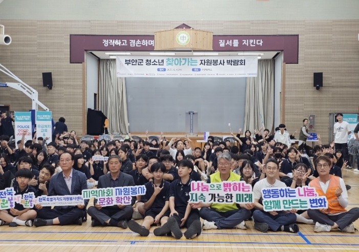 [무한뉴스=정민정 기자] 부안군자원봉사센터는 4일 부안중학교(교장 정승일)에서 1학년, 2학년 140여 명의 학생이 참여한 가운데 찾아가는 자원봉사 박람회를 개최했다.