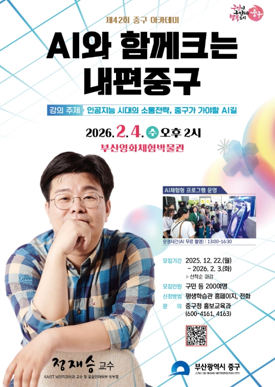 이번 아카데미는‘AI 중심도시’로 도약하는 중구의 비전을 구민과 공유하기 위해 마련됐으며, 강연과 체험이 결합된 실감형 교육으로 진행된다.