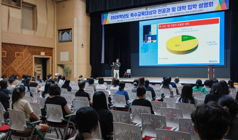 전북교육청은 16일 전주 치명자산성지 평화의 전당에서 ‘2026학년도 특수교육대상자 특수학교 전공과 및 대학 입학 설명회’를 개최했다.