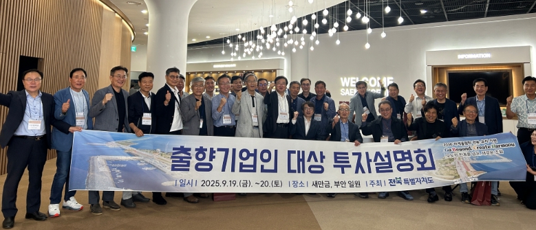 [무한뉴스=정민정 기자] 전북특별자치도가 이달 19일부터 20일까지 새만금과 부안 일원에서 '출향기업인 대상 투자설명회'를 개최했다.