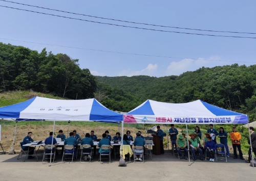 [무한뉴스=정민정 기자] 세종특별자치시가 27일 연서면 와촌리 일원에서 여름철 극한호우에 대비한 산사태 재난 대비 주민참여형 대피훈련과 재난현장 통합지원본부 설치·운영 점검을 실시했다.