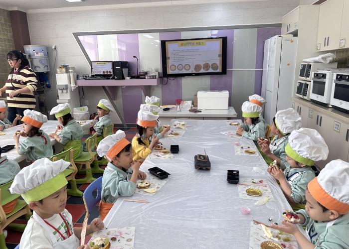 이번 현장체험학습은 요리활동, 표현누리 및 탐구누리 체험을 통하여 유아들의 창의력과 사회성을 기르고자 실시했다. 요리 활동에 참여한 유아들은 과일 타르트 재료들을 탐색하고, 타르트 생지에 크림치즈와 과일을 올려 완성된 타르트를 맛보았다. 이어 체험센터 내 표현누리(색모래놀이, 역할놀이, 목공놀이 등) 및 탐구누리(밧줄오르기, 암벽등반, 베르누이 야구 등) 영역에서 안전 약속을 지키며 놀이에 자유롭게 참여했다.