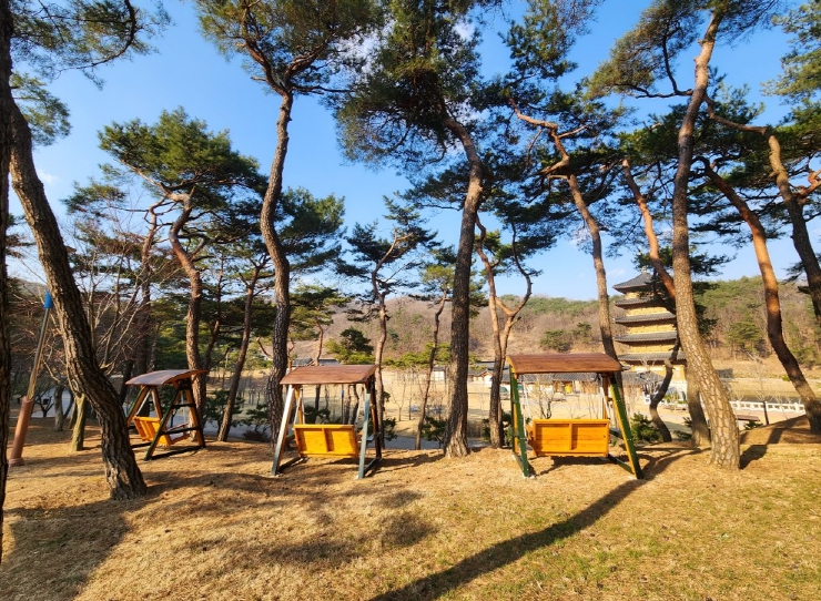 [무한뉴스=최진수 기자] 김천시 시설관리공단은 김천시 관광명소인 사명대사공원 내 쉼터 조성을 위하여 치유의 숲과 잔디광장 경계 부분에 3개의 흔들그네형 퍼걸러를 설치했다.