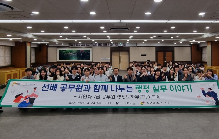 [무한뉴스=최진수 기자] 대구 서구청은 지난 24일 구청 대회의실에서 저연차 7급 공무원을 대상으로‘실무 중심 맞춤형 행정 노하우 교육’을 실시했다고 밝혔다.