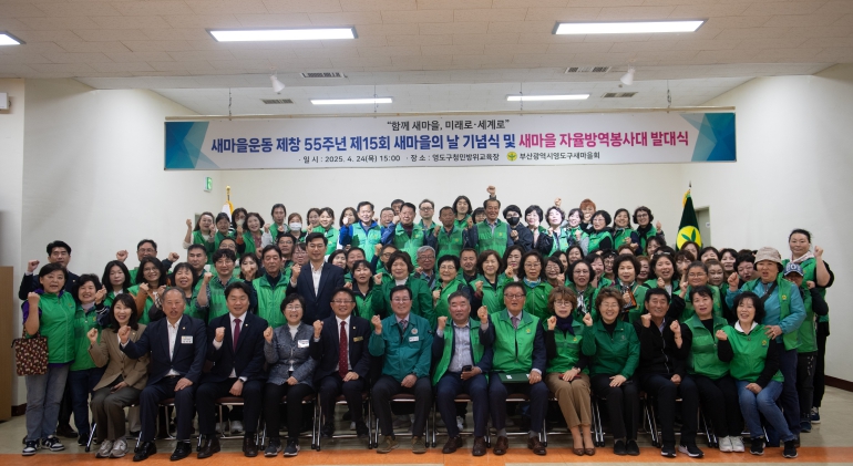 [무한뉴스=최진수 기자] 영도구새마을회는 지난 4월 24일 영도구청 민방위교육장에서 새마을운동 제창 55주년‘새마을의 날 기념식’ 및 ‘새마을 자율방역단 발대식’을 개최했다.