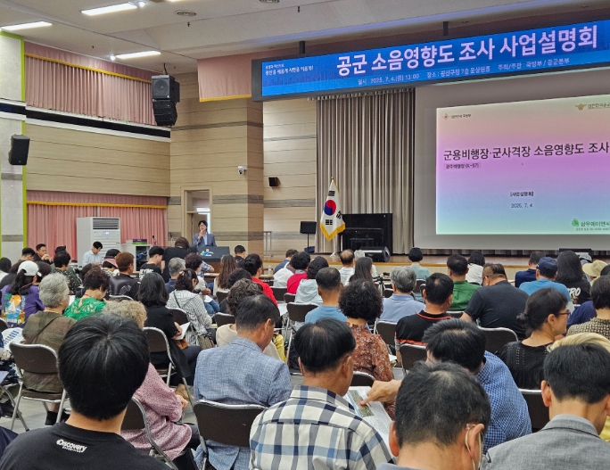 국방부가 주최하고, 공군본부가 주관한 이날 설명회는 올해 1월부터 내년 12월까지 진행되는 ‘군 소음영향도 조사’의 절차, 방법, 일정 등을 주민에게 알리고, 의견을 수렴하기 위해 마련됐다.