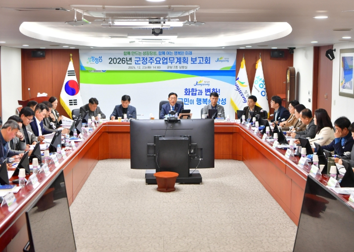 [무한뉴스=정민정 기자] 장성군이 2026년 군정 운영의 밑그림을 그렸다. 군은 최근 군청 상황실에서 부서장, 읍면장 전원이 참석한 가운데 새해 군정 주요업무계획 보고회를 가졌다.