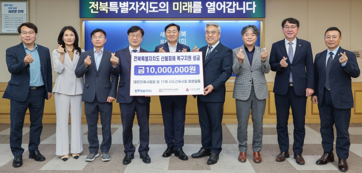 기탁식에 참석한 김관영 전북도지사는 “전국 건축사들의 정성이 전북의 아픔을 치유하는 데 큰 힘이 될 것”이라며 “도민을 대표해 진심으로 감사드린다. 이 온정이 전북의 재도약을 여는 희망의 불씨가 될 것”이라고 전했다.