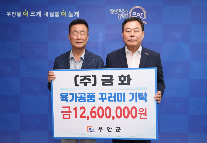 한편, ㈜금화는 도계 및 육가공 전문 종합식품회사로, 지역산 축산물을 활용한 고품질 육가공품을 생산·유통하고 있으며, 무안군을 비롯한 다양한 복지시설과 단체, 지역민에게 꾸준한 후원과 나눔을 실천하며 지역 상생에 앞장서고 있다.