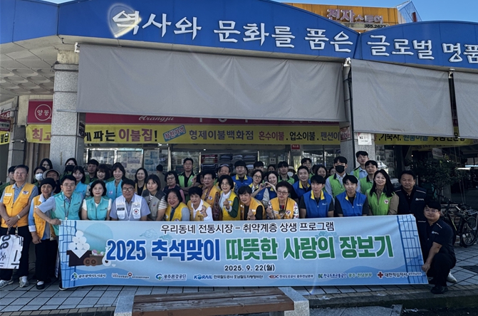 [무한뉴스=정민정 기자] 광주도시공사는 22일 추석명절을 맞아 광주 서구 양동시장에서 대한적십자사 광주전남지사와 함께 소외계층을 위한 사랑의 장보기 행사를 진행했다.