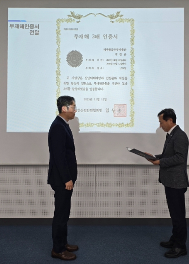 [무한뉴스=정민정 기자] 제주국제자유도시개발센터는 제주항공우주박물관이 무재해 목표 3배수(1,534일)를 달성해 대한산업안전협회로부터 인증서를 받았다고 15일 밝혔다.