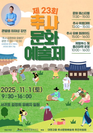 [무한뉴스=정민정 기자] 제주특별자치도 세계유산본부는 11월 1일 서귀포 김정희 유배지 일원에서 ‘제23회 추사문화예술제’를 개최한다.