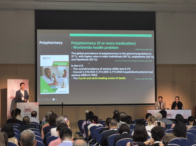 인드림헬스케어 강병주 대표는 ‘How to use AI to optimize your EMR’을 주제로 강연을 진행하며, 직접 개발한 마이차트와 메디서포트를 활용한 다제약물 안전관리 사례를 직접 소개했다.