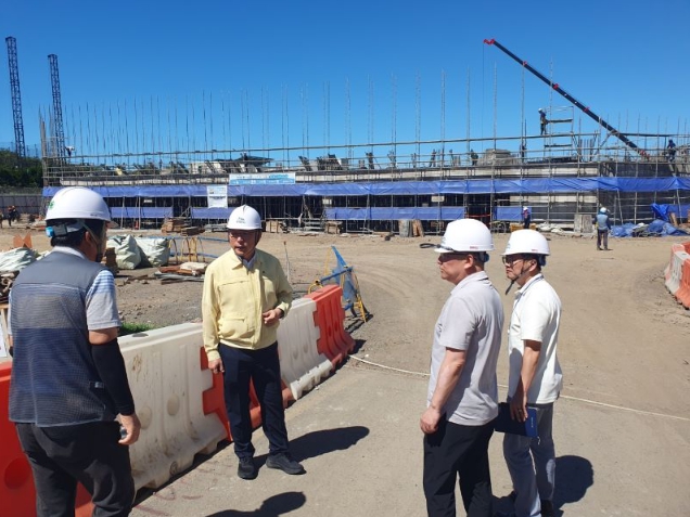 [무한뉴스=정민정 기자] 서귀포시는 연일 이어지는 폭염 속에서 건축공사장 근로자의 건강 보호와 안전사고 예방을 위해 28일 오성한 안전도시건설국장 및 건축행정팀장 등이 참석한 가운데 폭염피해 예방을 위한 현장점검을 실시했다.