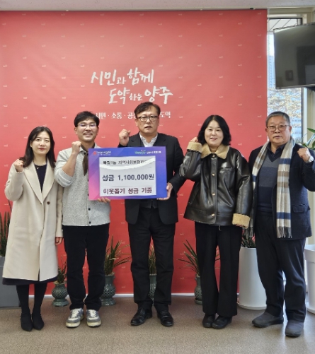 [무한뉴스=정승훈 기자] 양주시 옥정1동이 옥정1동 지역사회보장협의체에서 추운 겨울 도움이 필요한 이웃을 위해 ‘이웃사랑 성금’ 110만 원을 기부했다고 밝혔다.