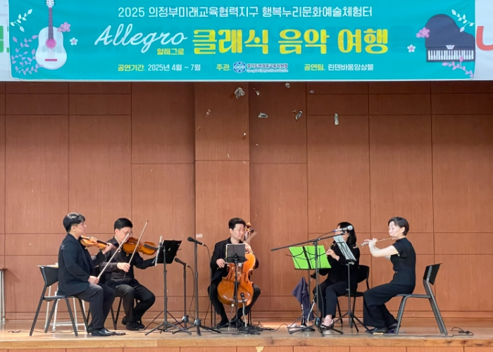 [무한뉴스=정승훈 기자] 의정부교육지원청은 2025년 미래교육협력지구 사업의 일환으로 ‘학교로 찾아가는 행복누리문화예술체험터’ 클래식 공연을 2025년 7월 관내 8개 중·고등학교에서 순차적으로 운영한다고 밝혔다.