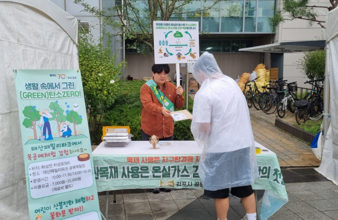 [무한뉴스=정승훈 기자] 김포시는 지난 19일 장기동 한강중앙공원에서 국산 목재 이용, 탄소중립 실현, 목재 이용 문화 정착을 촉진하기 위하여 목재이용 권장 캠페인을 개최했다.
