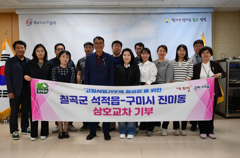 [무한뉴스=최진수 기자] 칠곡군 석적읍과 구미시 진미동 직원들이 고향사랑기부금을 상호 교차 기부하며 지역사회 발전과 기부문화 확산에 앞장서고 있다.