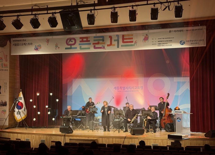 | ▲ 11월 25일 세종특별자치시교육청 대강당에서 열린‘2025년 세종예술온(ON)학교 온아카데미 서울팝스오케스트라 재즈앙상블 오픈콘서트’모습 |