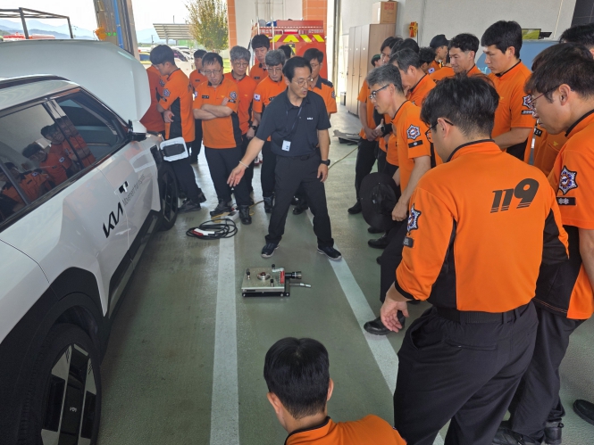 이번 교육은 전기차 보급 확대에 따라 현장대원들의 전문 대응역량을 높이기 위해 기아자동차 대구 서비스센터의 지원을 받아진행됐다.