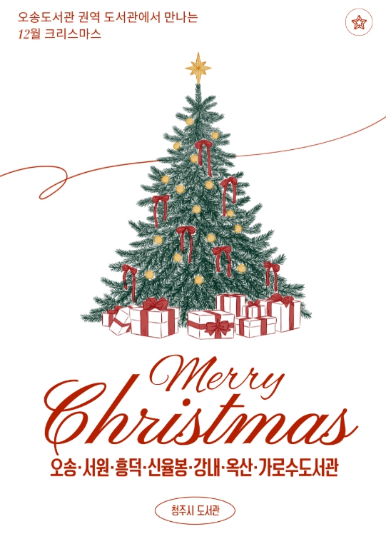 [무한뉴스=정민정 기자] 청주시 오송도서관 권역 7개관(오송·서원·흥덕·신율봉·강내·옥산·가로수도서관)은 크리스마스 시즌을 맞아 12월 한 달 동안 다채로운 문화행사를 진행한다.