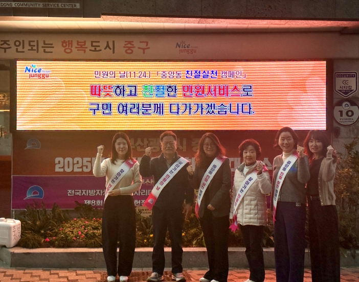 [무한뉴스=최진수 기자] 부산 중구 중앙동은 제4회 민원의 날을 맞아 11월 24일 월요일부터 11월 28일 금요일까지 5일간 '중앙동 친절실천 캠페인' 주간을 전개한다.