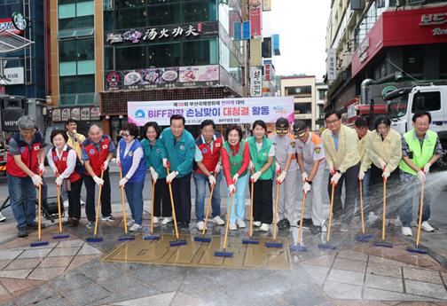 이날 활동에는 관내 유관단체원, 주민 등 350여명이 참여했으며, 살수차량 2대를 동원하여 BIFF광장 일대의 바닥을 깨끗이 청소하고 공공시설물을 세척했다.